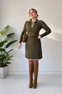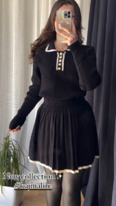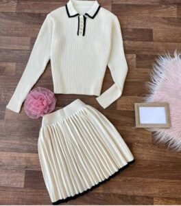 + Free Shippingطقم نسائي مكون من بلوفر دافئ وتنورة مطوية، مثالي لإطلالة يومية انيقة وعصرية.